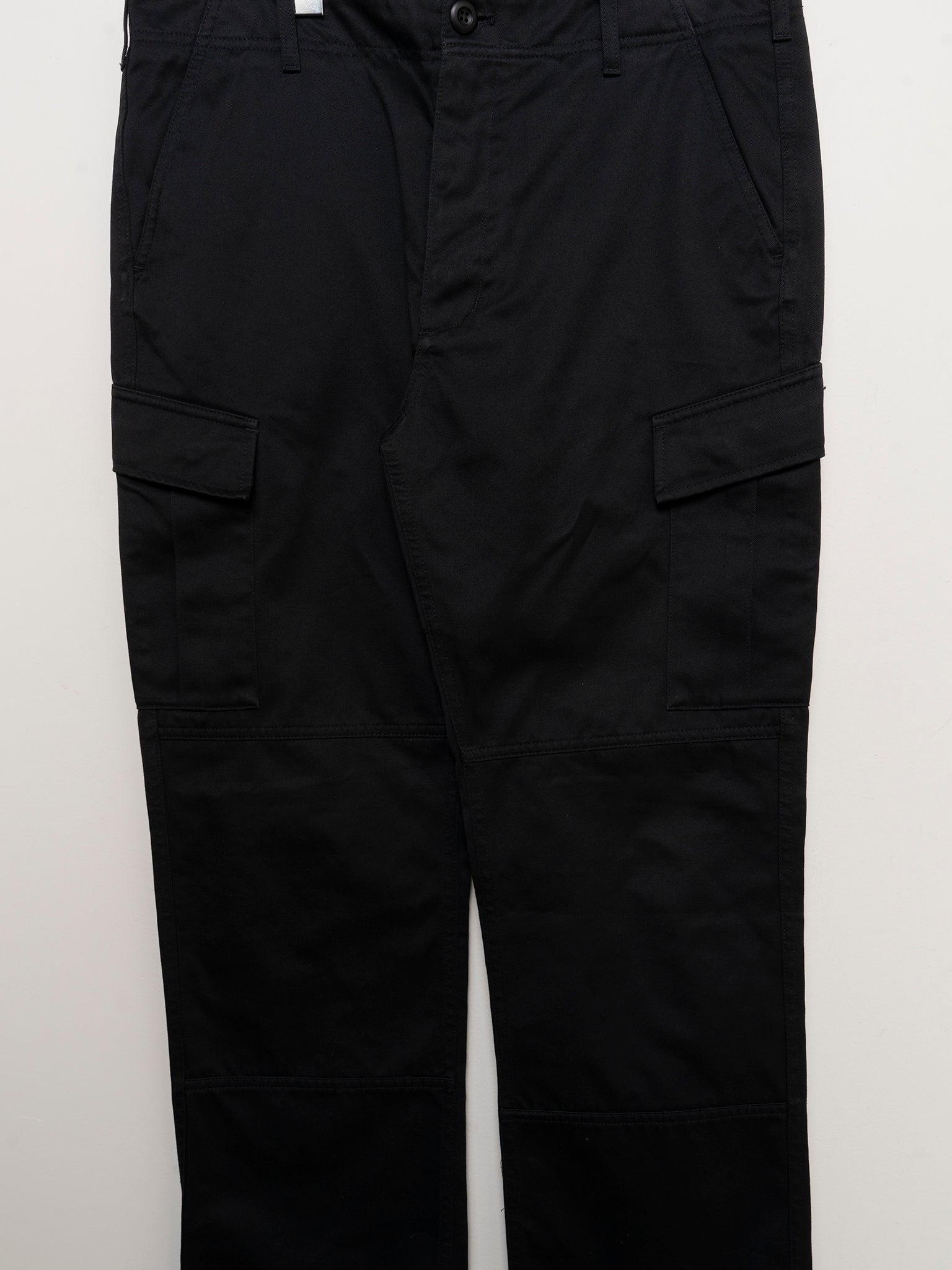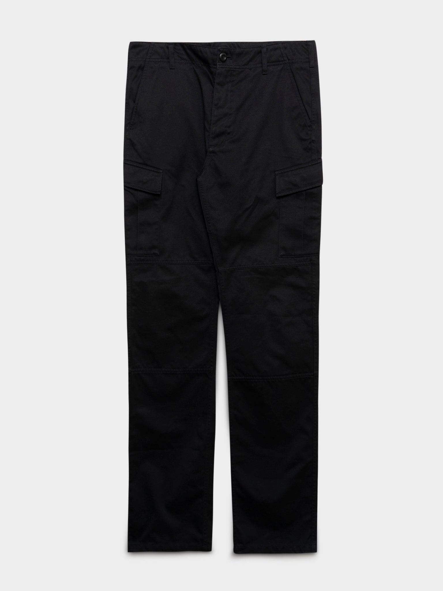 A pair of black Balenciaga straight legged pants with cargo pockets on the sides