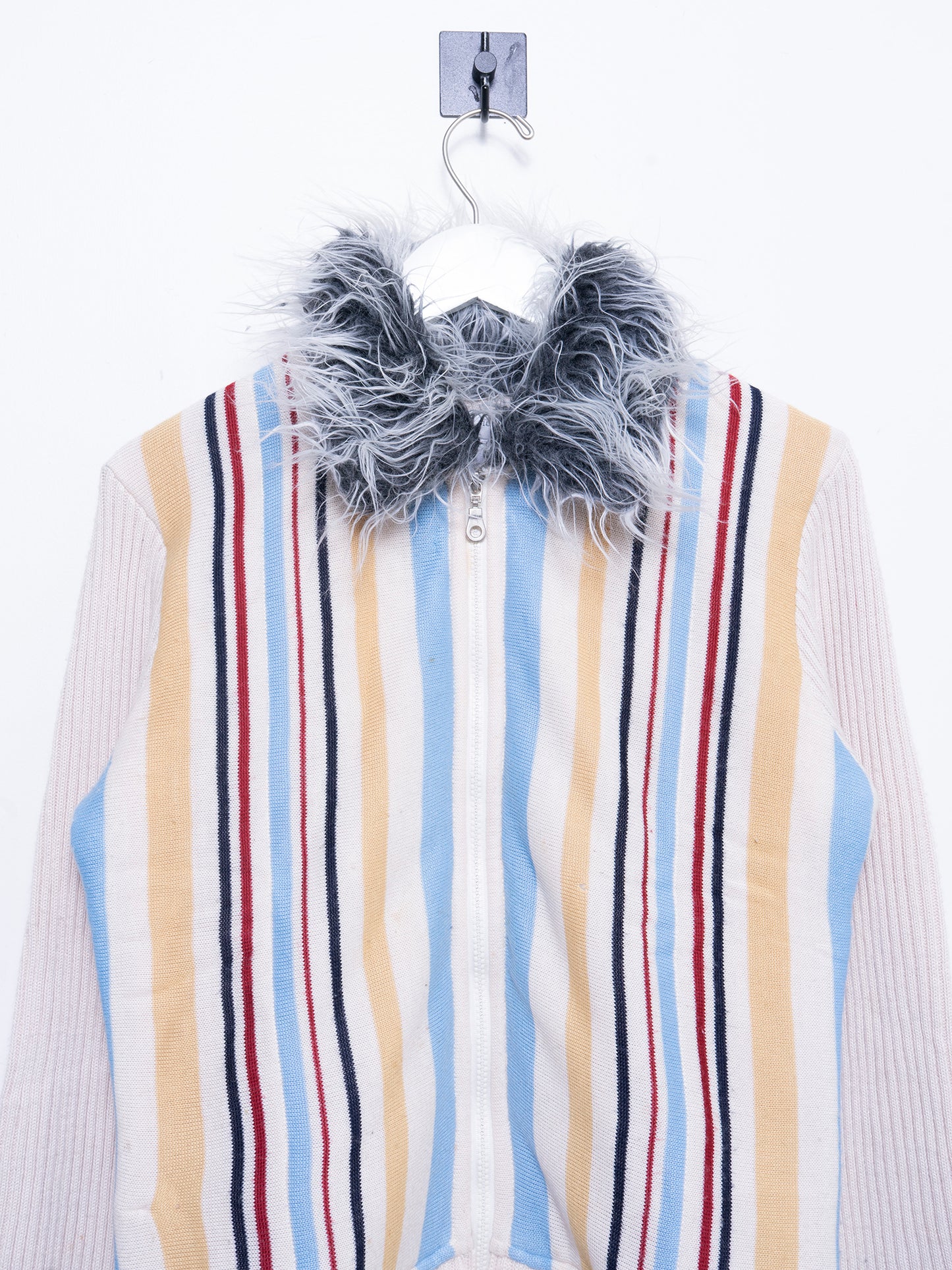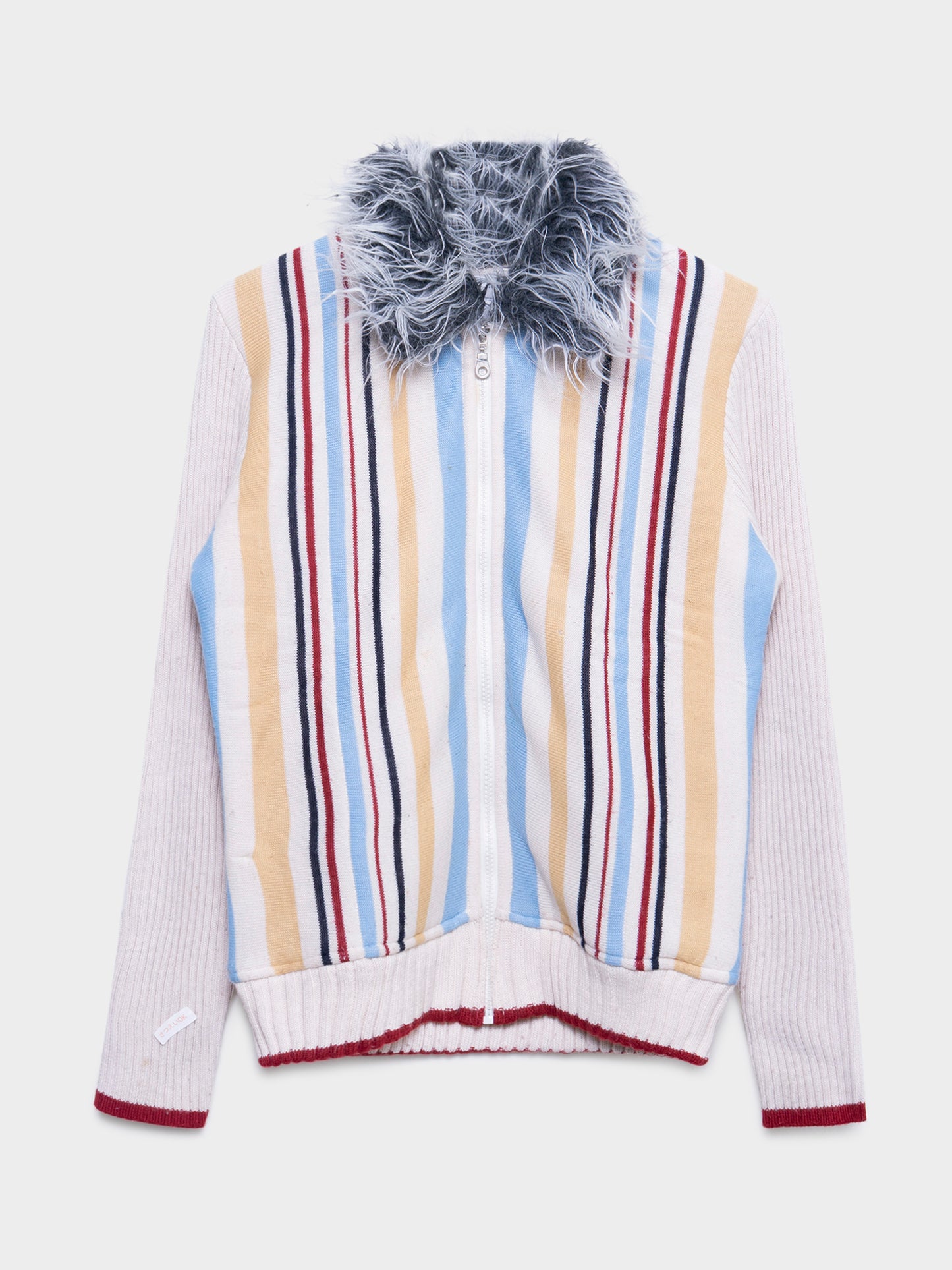 A striped vintage zip up knit shirt from Christian Dior with a fur collar
