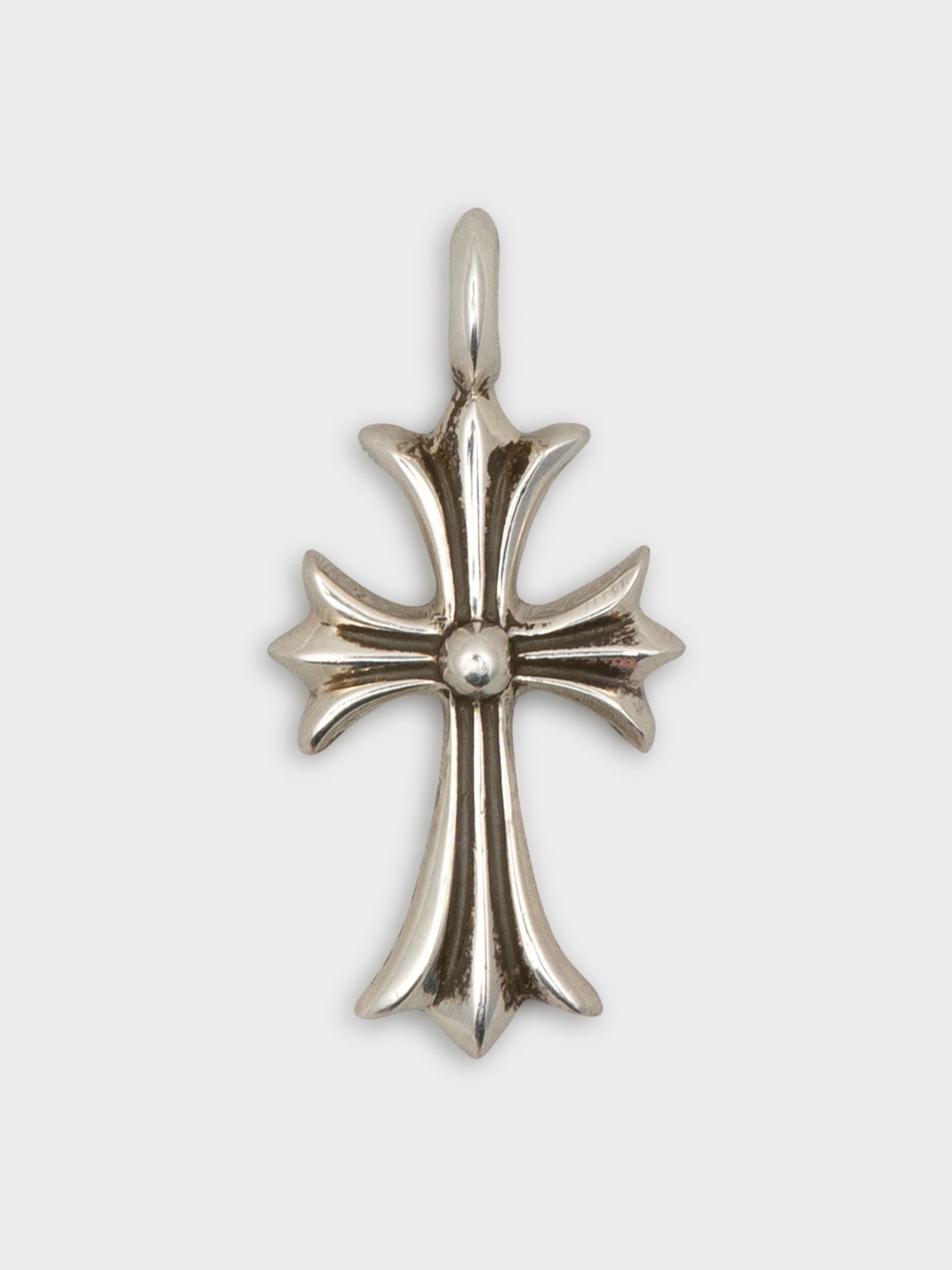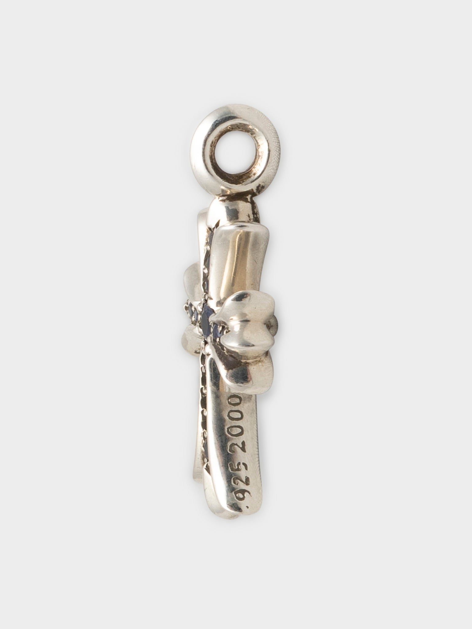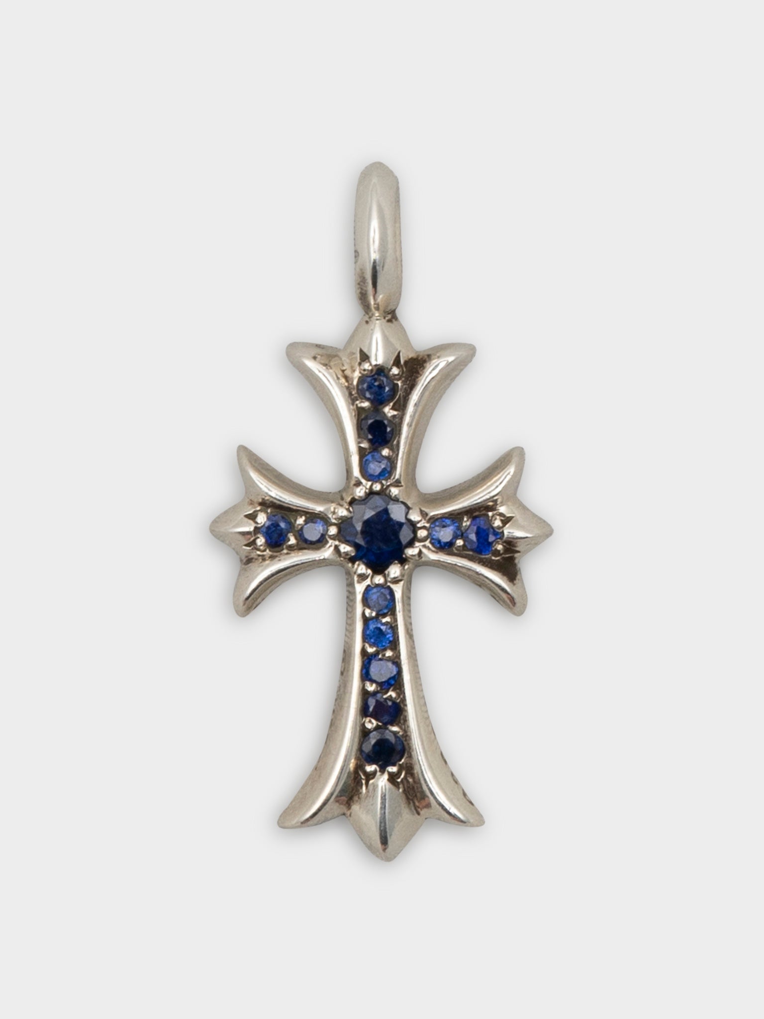 A sterling silver Chrome Hearts tiny cross pendant studded out with blue sapphires