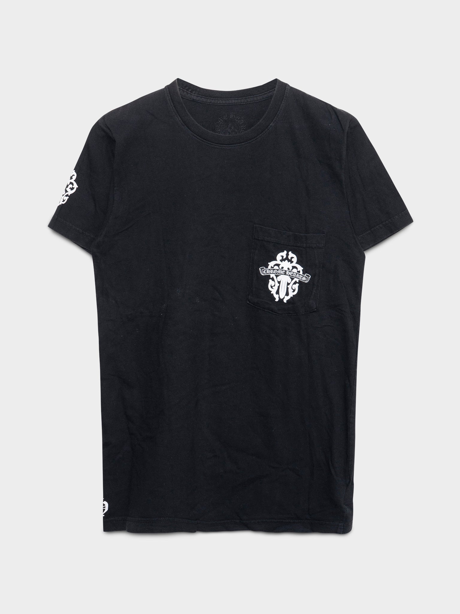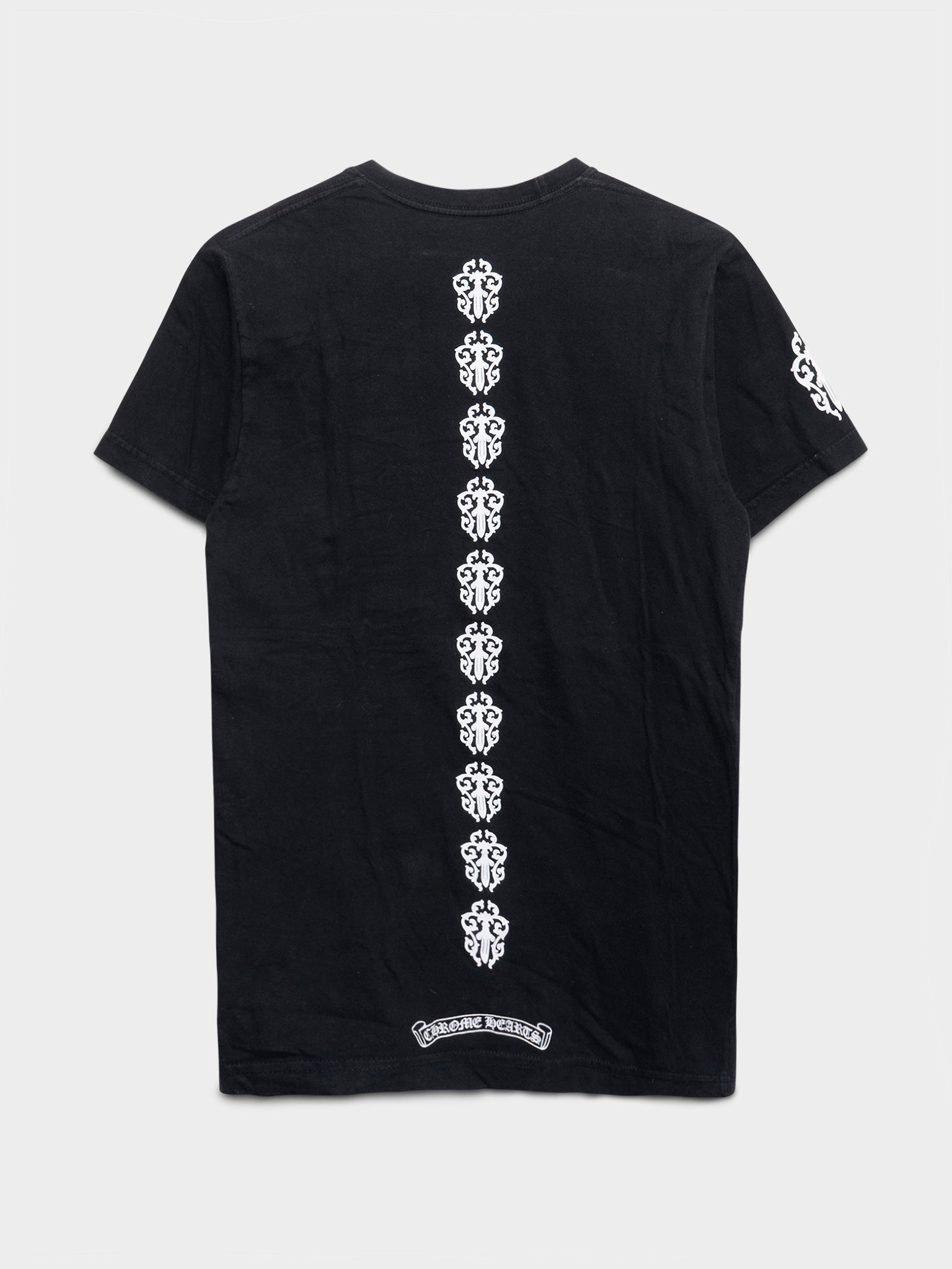A black Chrome Hearts tee with their hairy dagger design down the spine