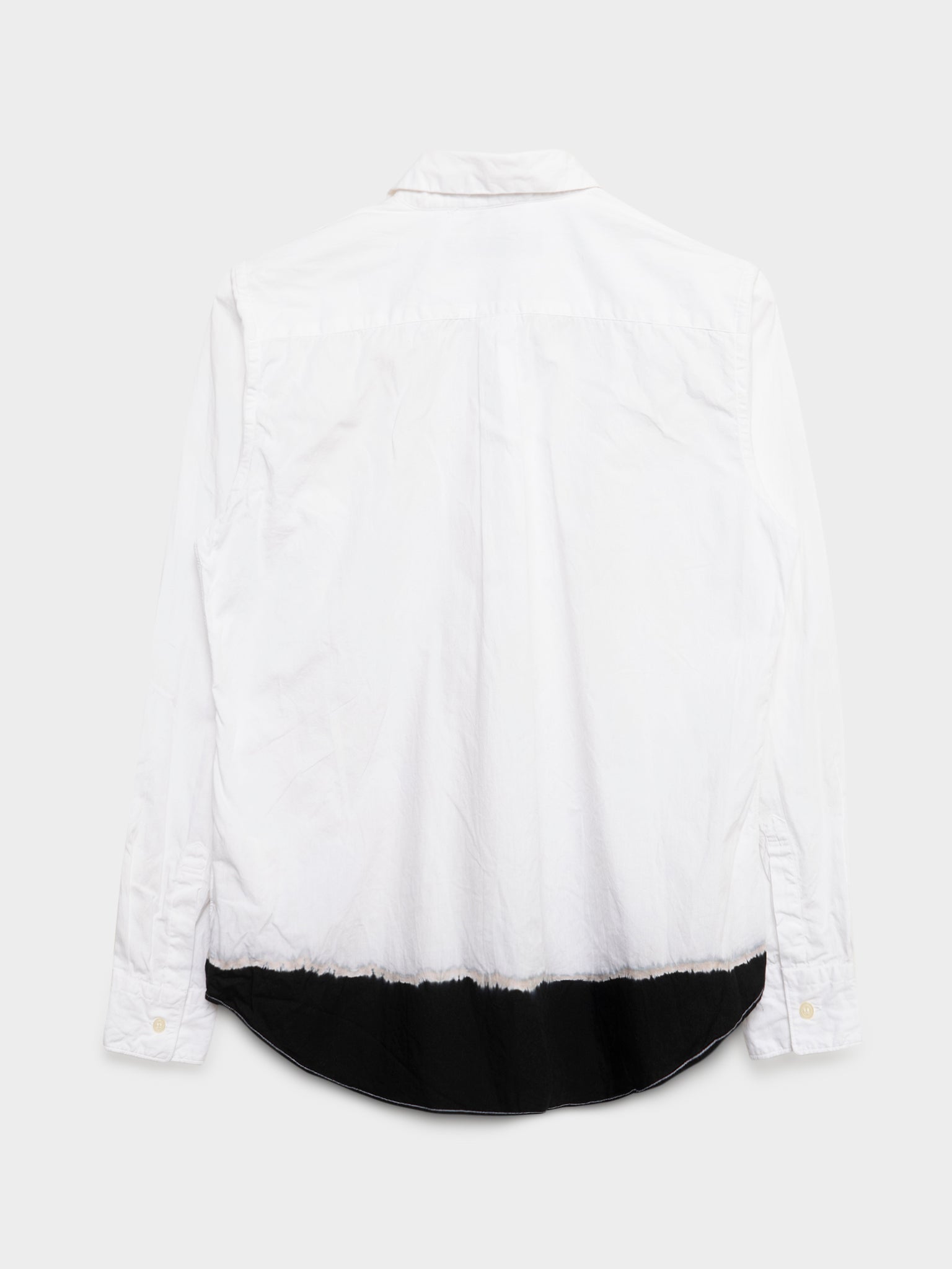 A Comme Des Garcons Black longsleeve button up shirt with a dip dye at the bottom
