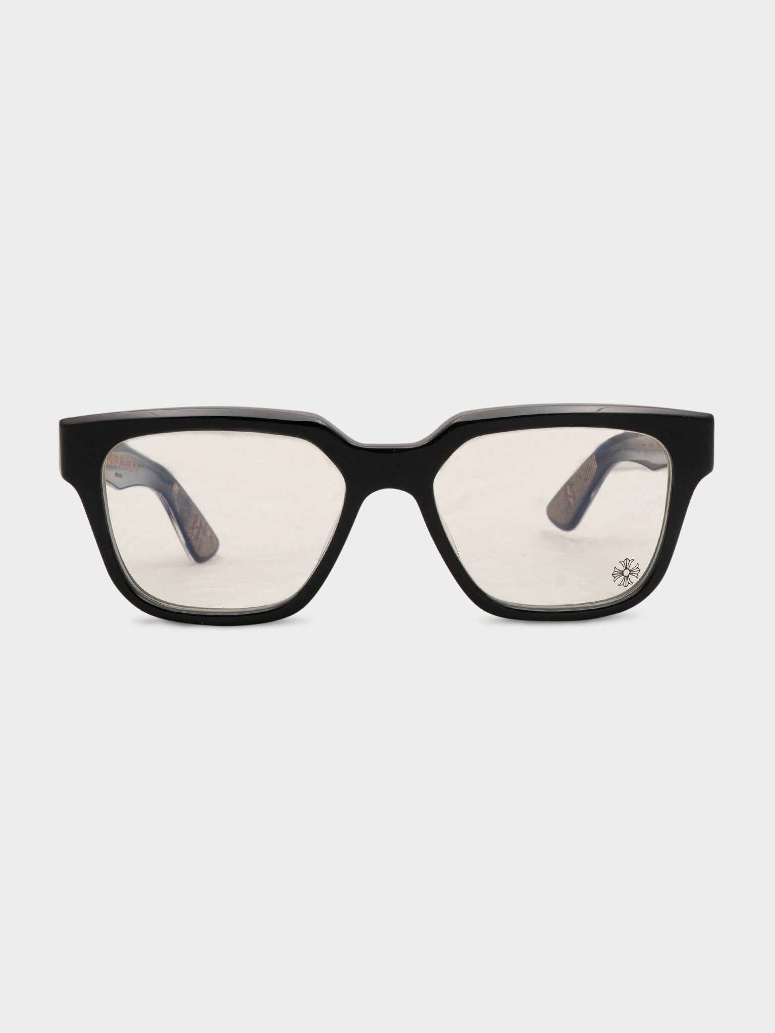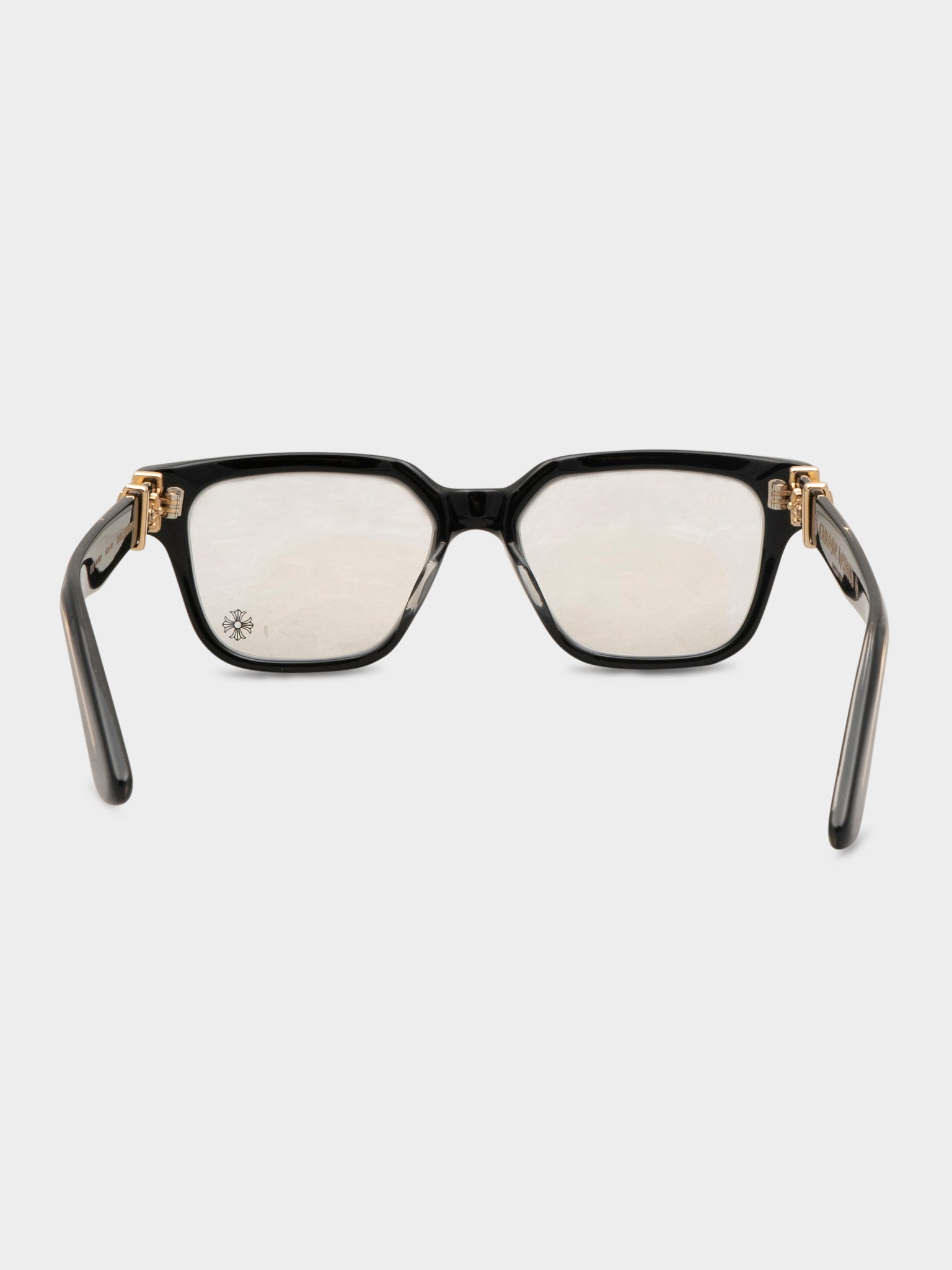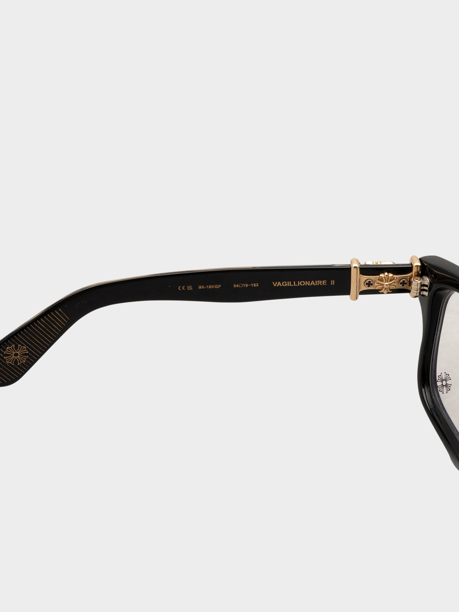A pair of Chrome Hearts Vagillionaire II glasses with gold hardware on the temples and arms.