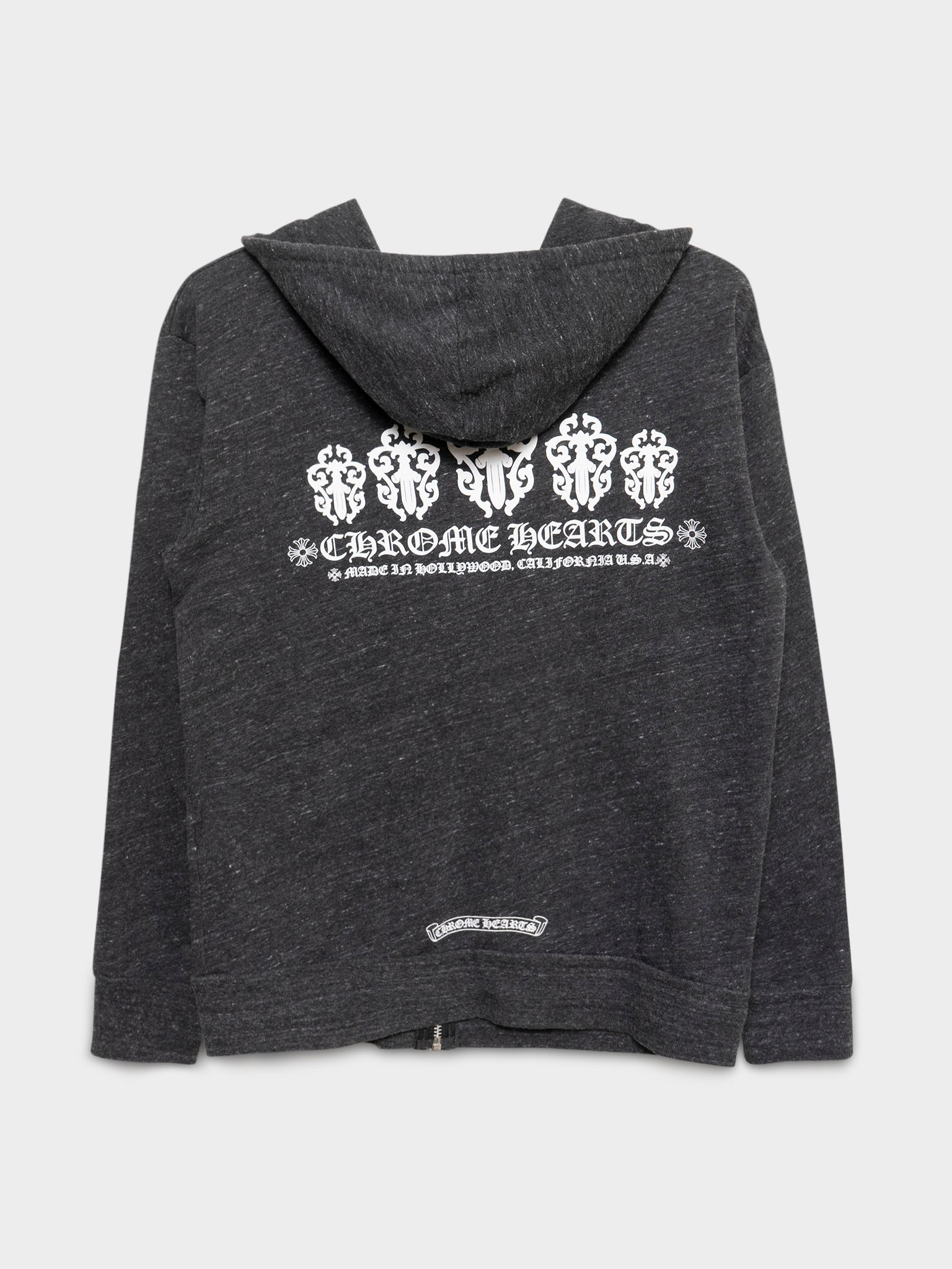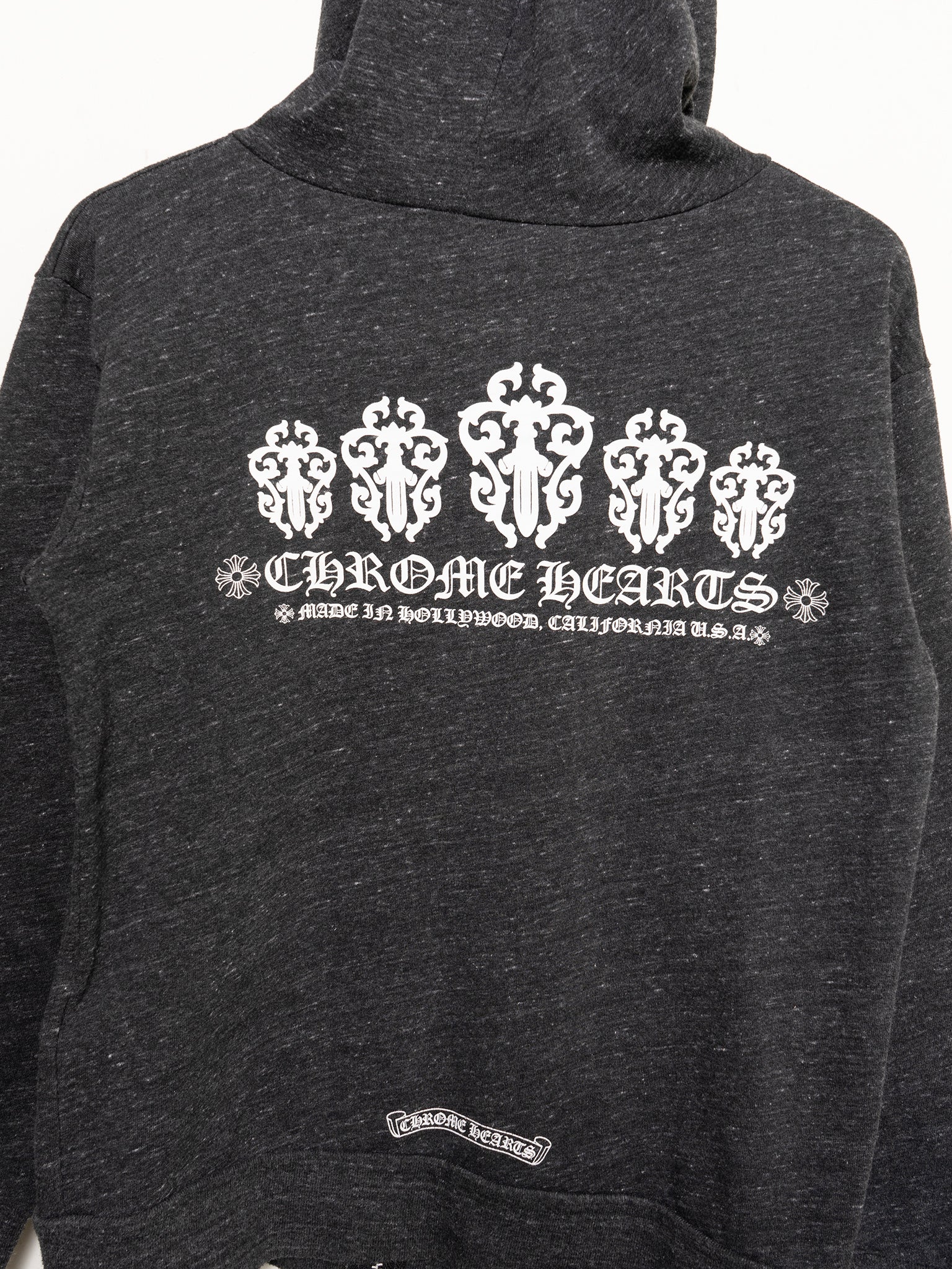 A super soft vintage grey Chrome Hearts zip up hoodie with vine dagger graphics