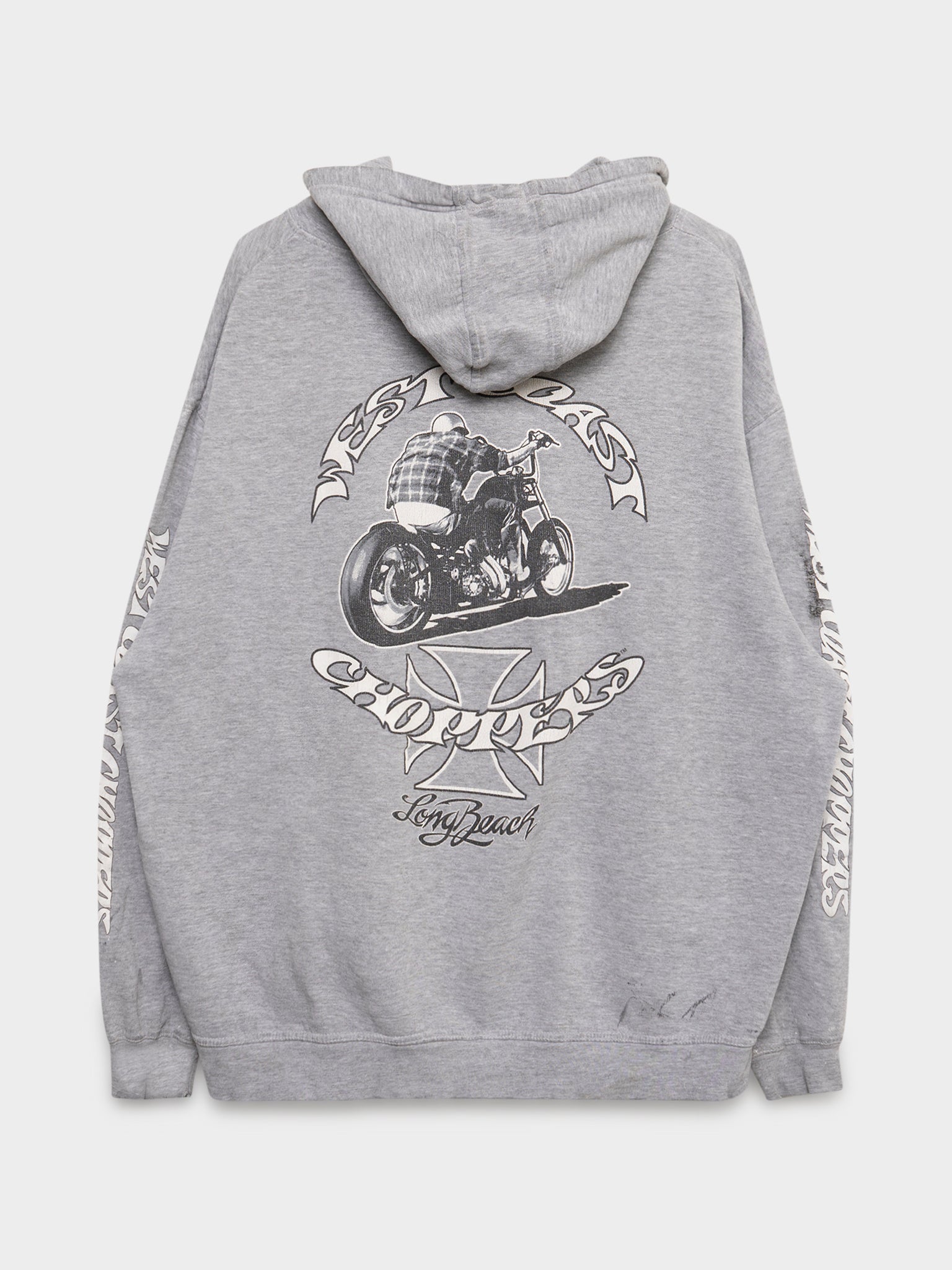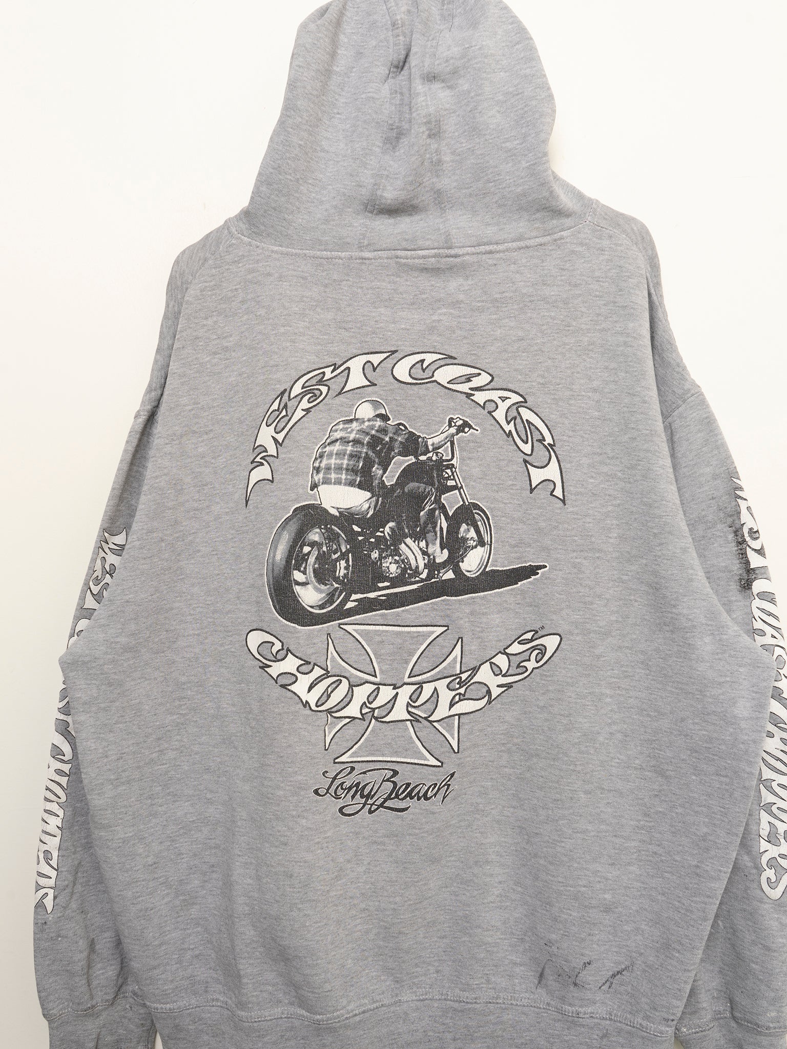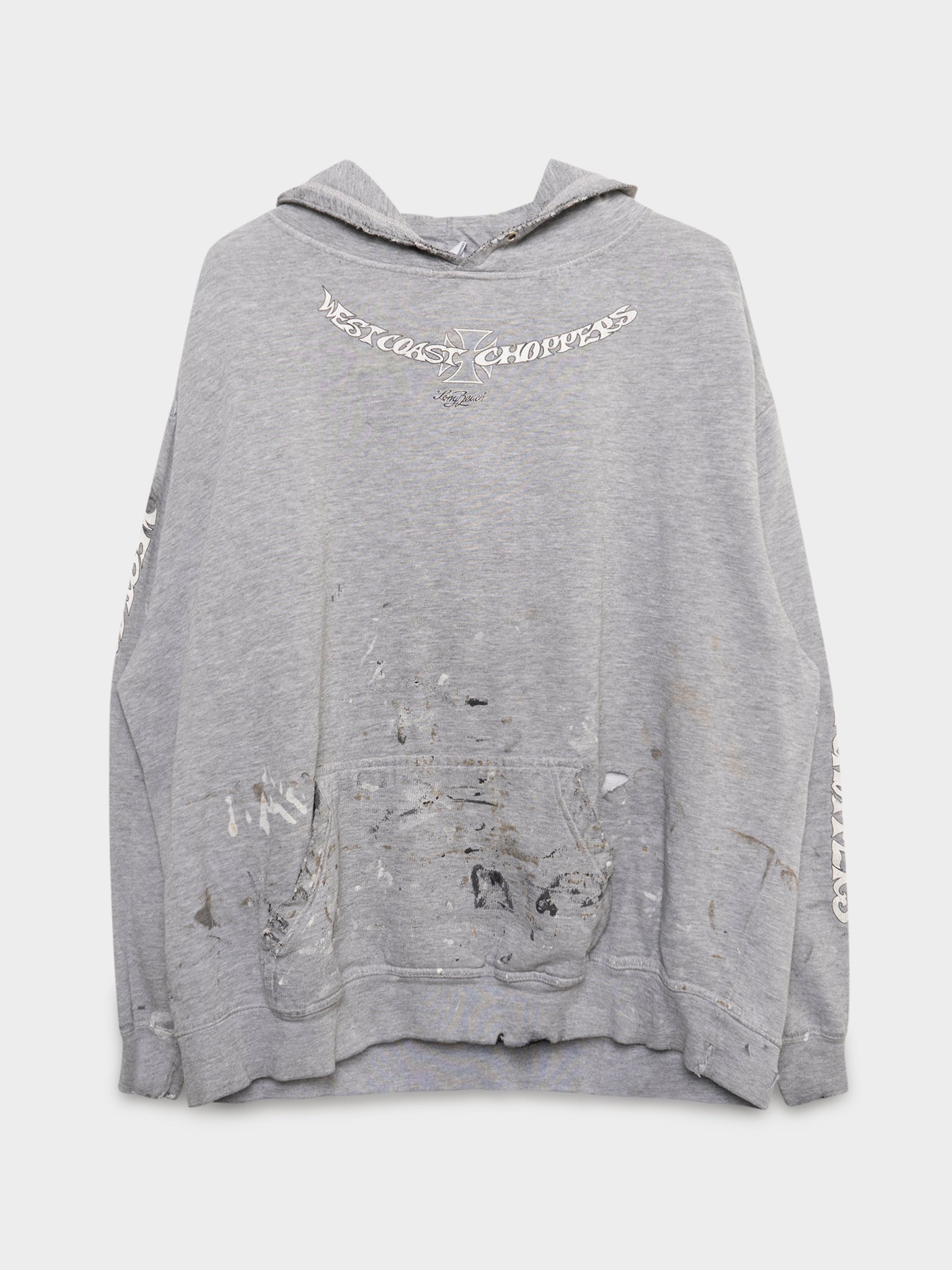 A vintage, paint splattered West Coast Choppers hoodie. Real Jesse James shit, you know the deal - PAY UP SUCKER